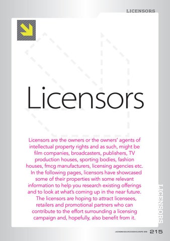 Licensors are the owners or the owners’ agents of intellectual property rights and as such, might be film companies, broadcasters, publishers, TV production houses, sporting bodies, fashion houses, fmcg manufacturers, licensing agencies etc. In the following pages, licensors have showcased some of their properties with some relevant information to help you research existing offerings and to look at what’s coming up in the near future. The licensors are hoping to attract licensees, retailers and promotional partners who can contribute to the effort surrounding a licensing campaign and, hopefully, also benefit from it.