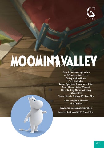 26 x 22 minute episodes of 3D animation from Gutsy Animations. Cast includes: Taron Egerton, Rosamund Pike, Matt Berry, Kate Winslet Directed by Oscar winning Steve Box Slated to air Spring 2019 on Sky Core target audience: 6 + family www.gutsy.fi/moominvalley In association with YLE and Sky.