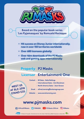 • Hit success on Disney Junior internationally, now in over 150 territories worldwide • Over 680 licensees globally • Over 46m downloads of the PJ Masks web and gaming apps internationally