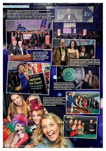 Licensing Awards In Pictures Right: Man of many voices, Rory Bremner, who hosted the event, had the audience enthralled with his impressions and repartee. Below: A highlight was the reveal that The Light Fund’s mega bike ride from Bristol to Dublin raised £230,000 for the charity with many of the cyclists coming on stage to mark the achievement. The two main organisers (front right and left) LSB’s Ian Hyder and Jami’s Warren Traeger were rightfully proud.