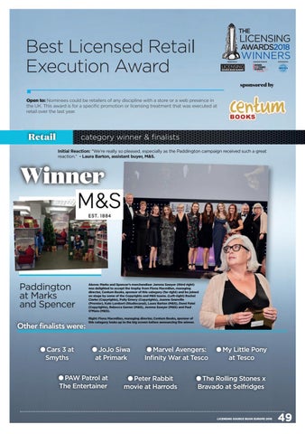 category winner & finalists Initial Reaction: “We’re really so pleased, especially as the Paddington campaign received such a great reaction.” - Laura Barton, assistant buyer, M&S.