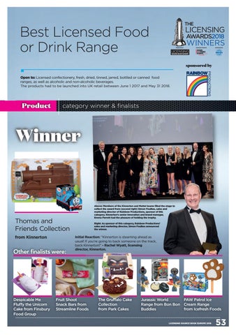 Best Licensed Food or D rink R ange sponsored by Open to: Licensed confectionery, fresh, dried, tinned, jarred, bottled or canned food ranges, as well as alcoholic and non-alcoholic beverages. The products had to be launched into UK retail between June 1 2017 and May 31 2018.