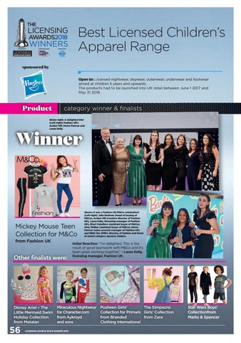 Best Licensed C h ildren’ s A pparel R ange sponsored by Open to: Licensed nightwear, daywear, outerwear, underwear and footwear aimed at children 5 years and upwards. The products had to be launched into UK retail between June 1 2017 and May 31 2018.