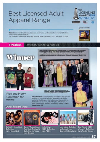 Best Licensed A du lt A pparel R ange sponsored by Open to: Licensed nightwear, daywear, outerwear, underwear, footwear and fashion accessories aimed at adults. The products had to be launched into UK retail between 1 2017 and May 31 2018.