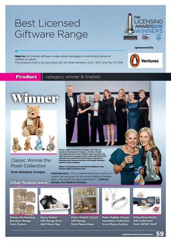 Best Licensed G if tware R ange sponsored by Open to: All licensed giftware ranges either packaged or sold simply, aimed at children or adults. The products had to be launched into UK retail between June 1 2017 and May 31 2018.