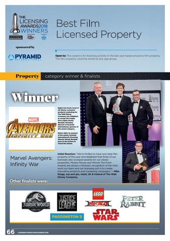 Best Film Licensed Property sponsored by Open to: This award is for licensing activity in the last year based around a film property. The film property could be aimed at any age group.