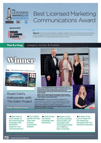 Roald Dahl’s Halloweden with The Eden Project Other finalists were: l 20th Century Fox’s Murder on the Orient Express Campaign with Movember (Agency: Lime Communications)