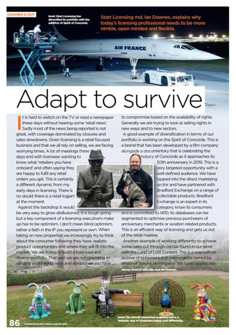 to compromise based on the availability of rights. Generally we are trying to look at selling rights in new ways and to new sectors. A good example of diversification in terms of our portfolio is working on the Spirit of Concorde. This is a brand that has been developed by a film company alongside a documentary that is celebrating the history of Concorde as it approaches its 50th anniversary in 2019. This is a very targeted opportunity with a well-defined audience. We have tapped into the direct marketing sector and have partnered with Bradford Exchange on a range of collectable products. Bradford Exchange is an expert in its category, know its consumers and is committed to NPD. Its databases can be segmented to optimise previous purchasers of anniversary merchants or aviation related products. This is an efficient way of licensing and gets us out of the retail malaise. Another example of working differently to achieve some sales cut through can be found in our work with the Land of Lost Content. This is a pop culture archive of ephemera and memorabilia owned by designer Wayne Hemingway. We have tapped into Above: Good IP still sells, says Ian Downes.