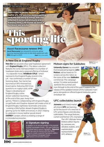 From rugby to racing, football to mixed martial arts, the sporting world is getting back into the swing of things, with this reflected in consumer products and licensing plans. LSB rounds up some of the recent key activity.