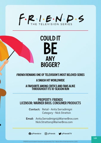PROPERTY: FRIENDS LICENSOR: WARNER BROS. CONSUMER PRODUCTS Contact: Retail - Anita Serradimigni Category - Nick Stratton Email: Anita.Serradimigni@WarnerBros.com Nick.Stratton@WarnerBros.com