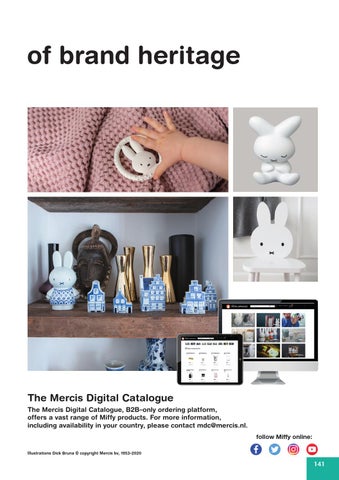 The Mercis Digital Catalogue The Mercis Digital Catalogue, B2B–only ordering platform, offers a vast range of Miffy products. For more information, including availability in your country, please contact mdc@mercis.nl. follow Miffy online: Illustrations Dick Bruna Š copyright Mercis bv, 1953-2020