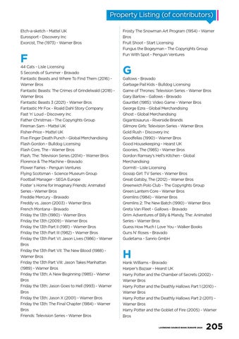 Hank Williams - Bravado Harper’s Bazaar - Hearst UK Harry Potter and the Chamber of Secrets (2002) Warner Bros Harry Potter and the Deathly Hallows Part 1 (2010) Warner Bros Harry Potter and the Deathly Hallows Part 2 (2011) Warner Bros Harry Potter and the Goblet of Fire (2005) - Warner Bros LICENSING SOURCE BOOK EUROPE 2020