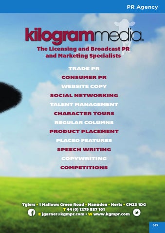 The Licensing and Broadcast PR and Marketing Specialists TRADE PR CONSUMER PR WEBSITE COPY SOCIAL NETWORKING TALENT MANAGEMENT CHARACTER TOURS REGULAR COLUMNS PRODUCT PLACEMENT PLACED FEATURES SPEECH WRITING COPYWRITING COMPETITIONS