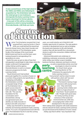 years, we could instantly see a long-term and scalable opportunity for partners. The style guide is currently in development and as well as bringing the brand and characters to life with fantastic creative, they will also benefit from strong back stories to add to the connection children will have to the brand.” Advanced discussions are underway on publishing, outerwear, accessories and nightwear, while Ashley sees further scope in bedding, bedroom furniture, stationery and back to school, as well as experiential activity once that area begins to return to normal. For Stuart Grant, group sourcing director at The Entertainer, the opportunity with Early Learning Centre is “monumental” and he is keen to work with partners which will “love and cherish the brand”. “The brand is having a huge resonance with young mums now – they were Early Learning Centre children and there is a huge amount of trust there,” Stuart explains to LSB. “People want good value for money, but they are also conscious of the social and environmental cost, while also encouraging their child in their development in the early years. We’re asking what categories will create awareness and are relevant for Early Learning Centre and how we put the brand at the forefront of mums’ minds.” Ashley says that it will be “very important” that