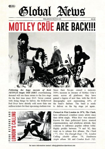 Following the huge success of their NETFLIX biopic THE DIRT, overwhelming demand will see them return to the live stage for the first time since 2015. Never content with doing things by halves, the Hollywood Bad Boys have already sold more than one million tickets for their upcoming stadium tour.
