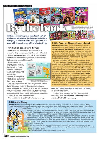 Little Brother Books looks ahead Little Brother Books is heading into its key Christmas selling season in “good shape to retain our position as the UK’s number one annuals publisher for the third consecutive year,” md Matthew Reynolds has told LSB. This year’s offering of 13 titles includes the addition of three exclusive new brands, best-selling gaming annuals, plus properties from the world of sport, toys and children’s entertainment. Matthew also stated that he is “very optimistic” about 2021 “although we appreciate it needs to be a year of recovery and consolidation for suppliers and retailers alike.” He continued: “We are already expecting the popularity of our gaming annuals, as well as World of Dinosaurs by The Natural History Museum to continue, with the number of retailers supporting these titles growing year on year. Similarly, we are delighted to see that O.M.G. and Kindi Kids are building momentum and we are confident that 2021 will be a big year for these brands with our retailers, as well as the launch of 44 Cats into our category.” The company has also been working on various new formats to build on its market offering and “further disrupt other areas of licensed publishing”, Matthew promised.