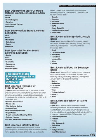 Best Licensed Fashion or Talent Brand (Open to: All licensed fashion or talent brands (including celebrities and ‘name’ brands from the world of sport, music, cookery, art/design or icons) that executed licensing activity (including in the UK) in the period 1 January 2019 to 31 December 2019.) • Emma Bridgewater • FatFace • Joules • Julie Dodsworth • Katie Alice • Oasis • Nadiya Hussain • Sara Miller London LICENSING SOURCE BOOK EUROPE 2020
