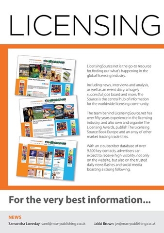 LicensingSource.net is the go-to resource for finding out what’s happening in the global licensing industry. Including news, interviews and analysis, as well as an event diary, a hugely successful jobs board and more, The Source is the central hub of information for the worldwide licensing community. The team behind LicensingSource.net has over fifty years experience in the licensing industry, and also own and organise The Licensing Awards, publish The Licensing Source Book Europe and an array of other market leading trade titles. With an e-subscriber database of over 9,500 key contacts, advertisers can expect to receive high visibility, not only on the website, but also on the trusted daily news flashes and social media boasting a strong following.