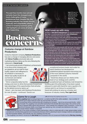 exceptional business leader and under his watch Rainbow has developed an established global reputation becoming one of the most admired costume character companies in the world. “David has always put our clients at the heart of our strategy and I, and the exceptional team at Rainbow, look forward to building upon this philosophy. It has been a great pleasure to work with David for over a quarter of a century and it is an honour to succeed him.” David will continue to serve as a trustee and treasurer of industry charity, The Light Fund. Left: 2021 will see The Laughing Cow turn 100.