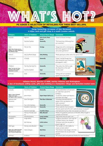 PG ASKED A SELECTION OF RETAILERS FOR THEIR BEST SELLERS. Serge Sumerling, co-owner of Nor, Norwood. A bijou card and gift shop in a south London suburb. Category