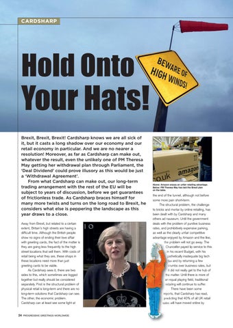 Your Hats! Brexit, Brexit, Brexit! Cardsharp knows we are all sick of it, but it casts a long shadow over our economy and our retail economy in particular. And we are no nearer a resolution! Moreover, as far as Cardsharp can make out, whatever the result, even the unlikely one of PM Theresa May getting her withdrawal plan through Parliament, the ‘Deal Dividend’ could prove illusory as this would be just a ‘Withdrawal Agreement’. From what Cardsharp can make out, our long-term trading arrangement with the rest of the EU will be subject to years of discussion, before we get guarantees of frictionless trade. As Cardsharp braces himself for many more twists and turns on the long road to Brexit, he considers what else is peppering the landscape as this year draws to a close. Away from Brexit, but related to a certain extent, Britain’s high streets are having a difficult time. Although the British people show no signs of ending their love affair with greeting cards, the fact of the matter is they are going less frequently to the high street locations that sell them. With costs of retail being what they are, these shops in these locations need more than just greeting cards to be viable. As Cardsharp sees it, there are two sides to this, which sometimes are logged together but really should be considered separately. First is the structural problem of physical retail is long-term and there are no long-term solutions that Cardsharp can see. The other, the economic problem. Cardsharp can at least see some light at