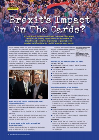 Brexit’s Impact On The Cards? As the Brexit situation continues to evolve, Sherwood Group’s ceo Jeremy Bacon draws on his wealth of industry and economic experience to predict some possible ramifications for the UK greeting card sector.