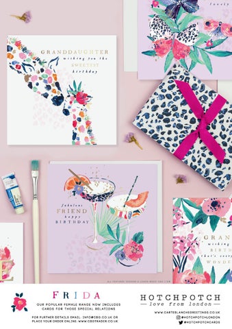 our popular female range now includes ca rds for those s p e ci a l rel at ion s w w w. c a r te b l a n c h e g r e e t i n g s . c o . u k FO R F U R T H E R D E TA I L S E M A I L : i n f o @ C B G . c o . u k o r