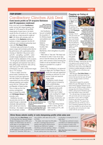 Extra costs have knocked Cardfactory’s profits, but the UK’s largest greeting card retailer of 1,073 stores (in UK and ROI) shared plenty of good news in its interim results (for the six months to 31 July), with its card sales up, a deal secured to supply all Aldi’s UK stores with everyday cards, an acquisition of the Garlanna publishing business in Ireland, expansion into the US confirmed, and a bolstered partnership down under with The Reject Shop.