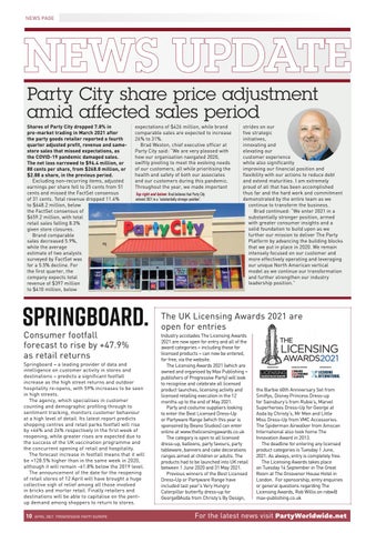 expectations of $426 million, while brand comparable sales are expected to increase 26% to 31%. Brad Weston, chief executive officer at Party City said: “We are very pleased with how our organisation navigated 2020, swiftly pivoting to meet the evolving needs of our customers, all while prioritising the health and safety of both our associates and our customers during this pandemic. Throughout the year, we made important Top right and below: Brad believes that Party City entered 2021 in a “substantially stronger position”.