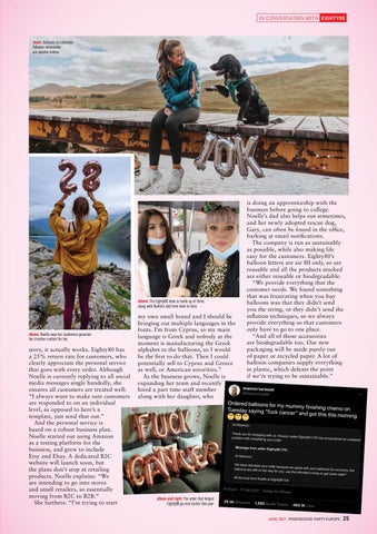 is doing an apprenticeship with the business before going to college. Noelle’s dad also helps out sometimes, and her newly adopted rescue dog, Gary, can often be found in the office, barking at email notifications. The company is run as sustainably as possible, while also making life easy for the customers. Eighty80’s balloon letters are air fill only, so are reusable and all the products stocked are either reusable or biodegradable. “We provide everything that the customer needs. We found something that was frustrating when you buy balloons was that they didn’t send you the string, or they didn’t send the inflation techniques, so we always provide everything so that customers only have to go to one place. “And all of those accessories are biodegradable too. Our new packaging will be made purely out of paper or recycled paper. A lot of balloon companies supply everything in plastic, which defeats the point if we’re trying to be sustainable.”