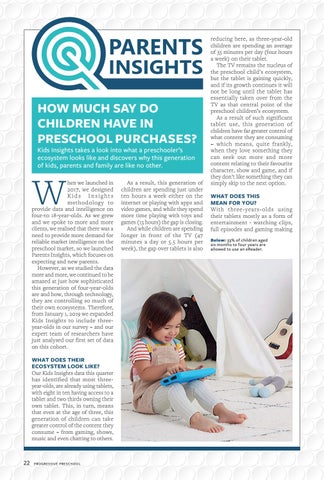 hen we launched in 2017, we designed Kids Insights methodology to provide data and intelligence on four-to 18-year-olds. As we grew and we spoke to more and more clients, we realised that there was a need to provide more demand for reliable market intelligence on the preschool market, so we launched Parents Insights, which focuses on expecting and new parents. However, as we studied the data more and more, we continued to be amazed at just how sophisticated this generation of four-year-olds are and how, through technology, they are controlling so much of their own ecosystems. Therefore, from January 1, 2019 we expanded Kids Insights to include threeyear-olds in our survey – and our expert team of researchers have just analysed our first set of data on this cohort.