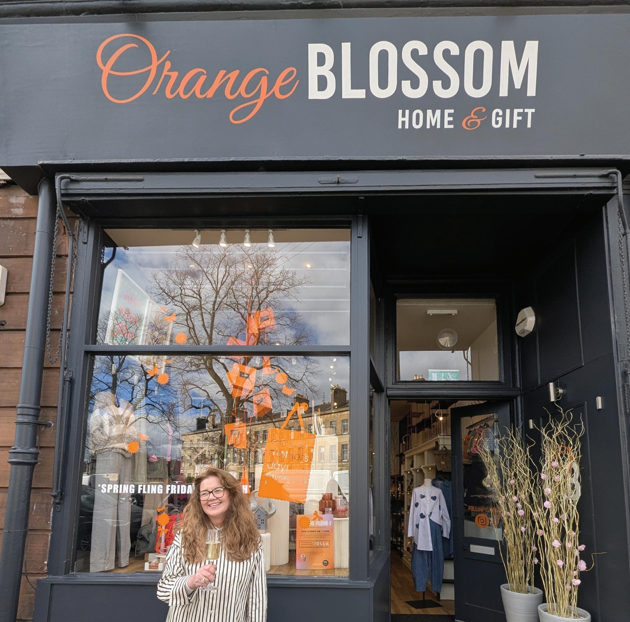 Above: Orange Blossom Home & Gifts’ Shirley MacIver celebrating with a glass of fizz.