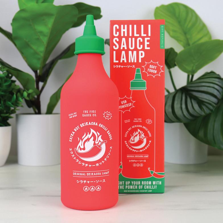Introducing the Chilli Sauce Lamp by Gift Republic. The quirky, rechargeable lamp is designed to look like a vibrant chilli sauce bottle, adding a spicy twist to your space. With three adjustable light settings, it is perfect for creating a cozy, playful ambiance. USB rechargeable, it offers up to six hours of lighting. Ideal for kitchens, living rooms or as a fun gift for any hot sauce lover.