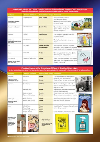 A continuation of the ‘shop local’ drive, the consumer’s increased appreciation of greeting cards on the back of an improved card selection plus their own social media activity were cited as among the major boons for indie card stockists over the last 12 months. On the negative front, the vagaries of the costof-living came top for the fourth year running, but Jellycat supply issues and shoplifting being new entries on the bugbears list.