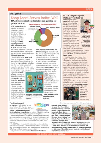 A continuation of the ‘shop local’ drive, the consumer’s increased appreciation of greeting cards on the back of an improved card selection plus their own social media activity were cited as among the major boons for indie card stockists over the last 12 months. On the negative front, the vagaries of the costof-living came top for the fourth year running, but Jellycat supply issues and shoplifting being new entries on the bugbears list.