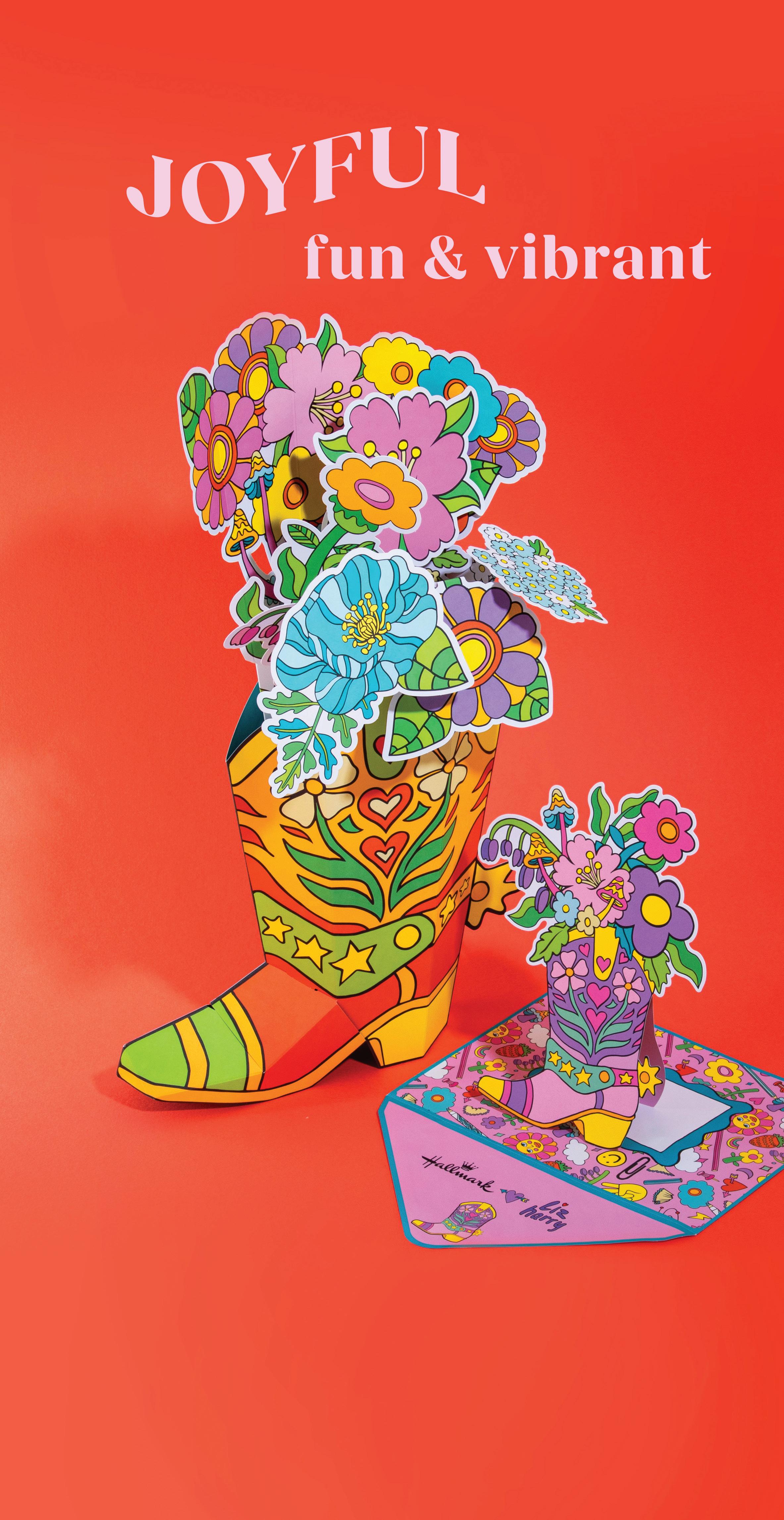 Liz and Hallmark come together in this playful collaboration that brings a POP OF POSITIVITY and celebrates the emotional power of sending and receiving cards.