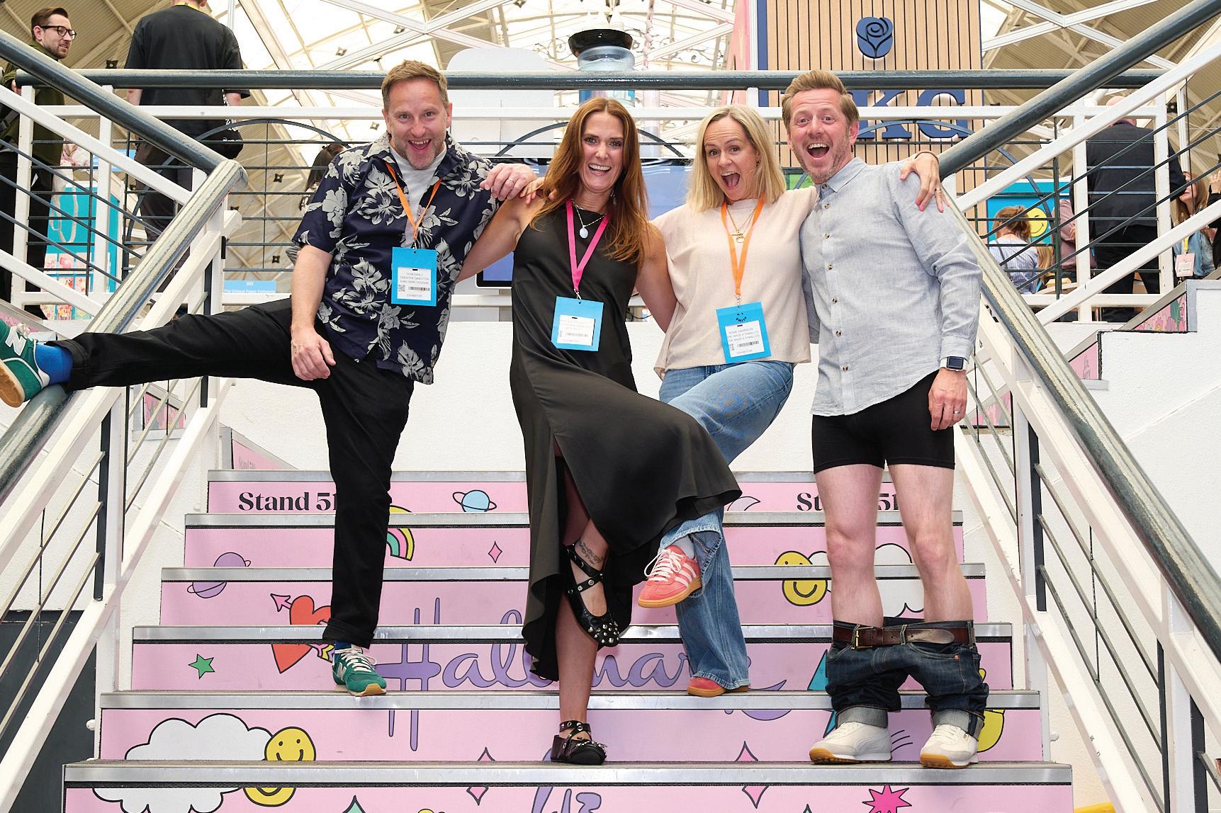Below: PG’s Warren Lomax (second left) and Ling’s David Byk (far right) with Retas award winners’ (left-right) Daisy Daisy’s Andy and Rebekah Mudie and Celebrations’ Tanya and Sonia Haandrikman-Sibbald.