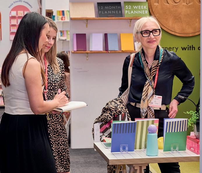 Right: Fenwick’s buyer Abigail Ball (left) on the PG/N Smith Bar-travanganza at Spring Fair with PG’s Jakki Brown. Below: The proof is in the bag! Ling/GBCC’s ceo David Byk (left) with PG’s Warren Lomax at the Spring Fair. Bottom: (centre) Simon Duggan-Hill, the new ceo of Hallmark International with PG’s Warren Lomax and Jakki Brown.