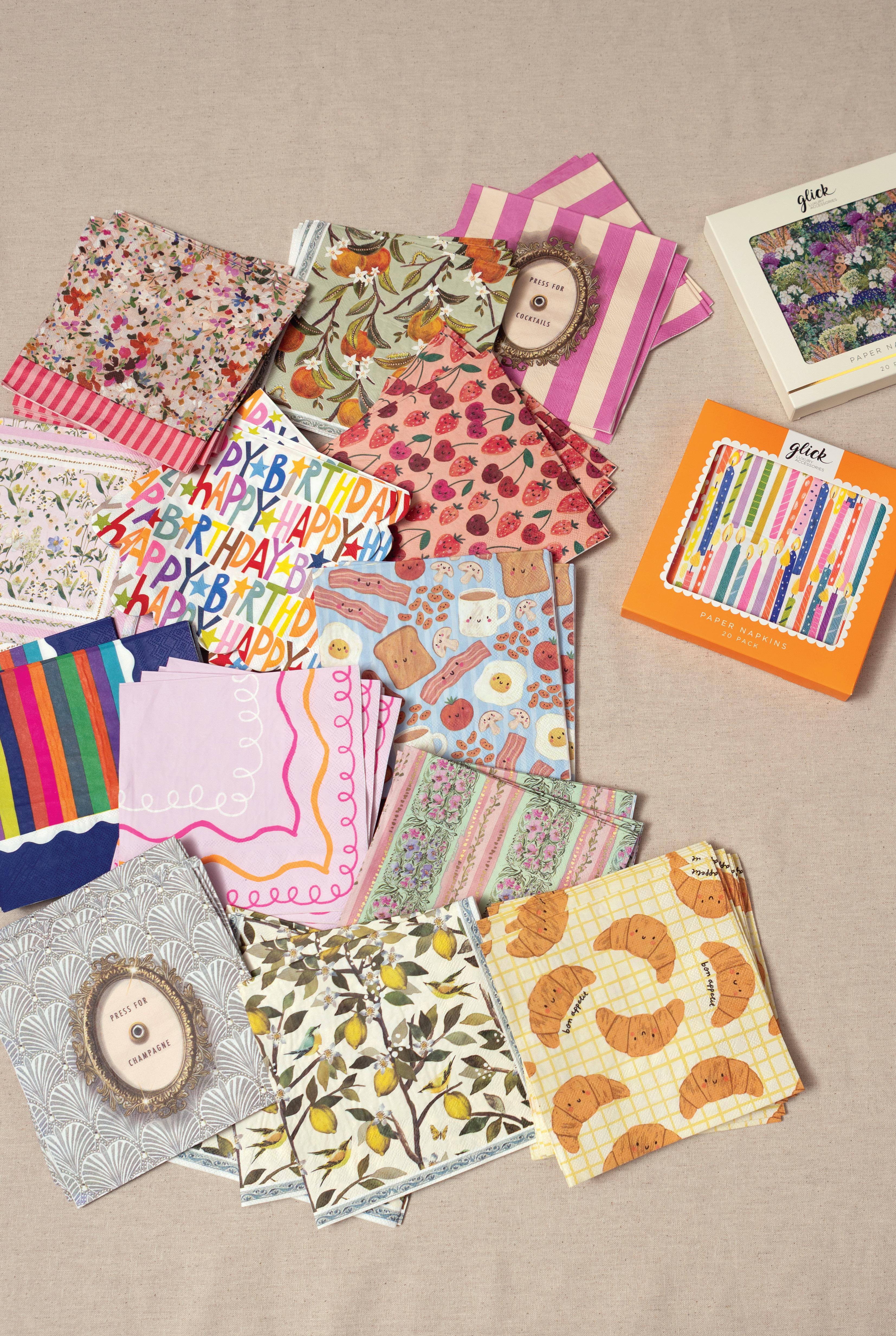 WE ARE DELIGHTED TO INTRODUCE A RANGE OF NAPKINS WITH ON-TREND COLOURS AND DESIGNS FROM OUR BEST SELLING COLLABORATIONS.