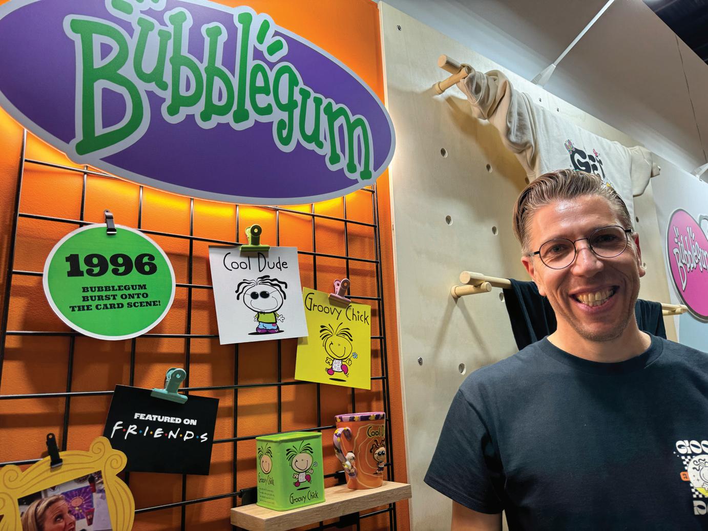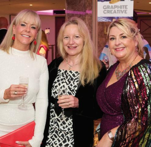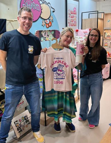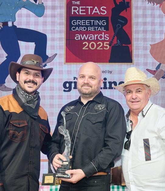 Left: Longstanding WHS/now TGJones’ card buyer (centre) Claire Castle, recipient of The Henries Honorary Achievement award at the event with colleague Sharon Fox (left) and PG’s Jakki Brown. Below left: Bubblegum’s set for a comeback. UKG’s Ben Whittington, Louise James (right) with PG’s Jakki Brown at the recent BLE show. (See pages 72-73)