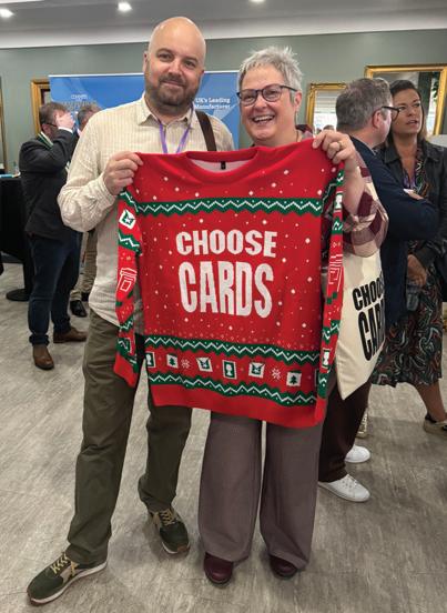 Above: Cosying up on the Choose Cards front, Matt Simpson of The Letter Arty with PG’s Jakki Brown with their new Christmas jumpers. (See pages 70-71)