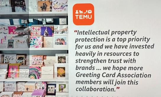 The GCA’s tenacity in pursuing this with Temu, where thousands of its thirdparty sellers have been caught copying UK cards, has seen the marketplace bring in new technology to speed up the identification and removal of British greeting card designs which infringe the intellectual property rights of association members.