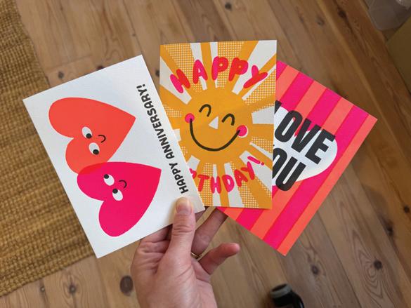 “They’ve elevated this, with bright red accents and envelopes. The range covers lots of male and sporting subjects.”