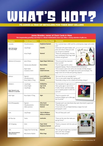 77-78 What’s Hot? A trio of retailers lift the lid on their bestselling ranges.