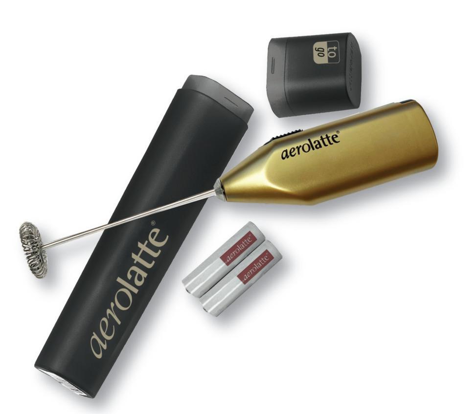 The new aerolatte To-Go Frother is a brushed champagne gold with a matt black protective travel and storage case. The new colour is the latest release of the original steam free frother, whisking milk in 0 to 20 seconds. It can be used with all types of milk including plant based. The frother makes hot and cold drinks including cappuccino, latte and hot chocolate and can also be used to prepare dressings.