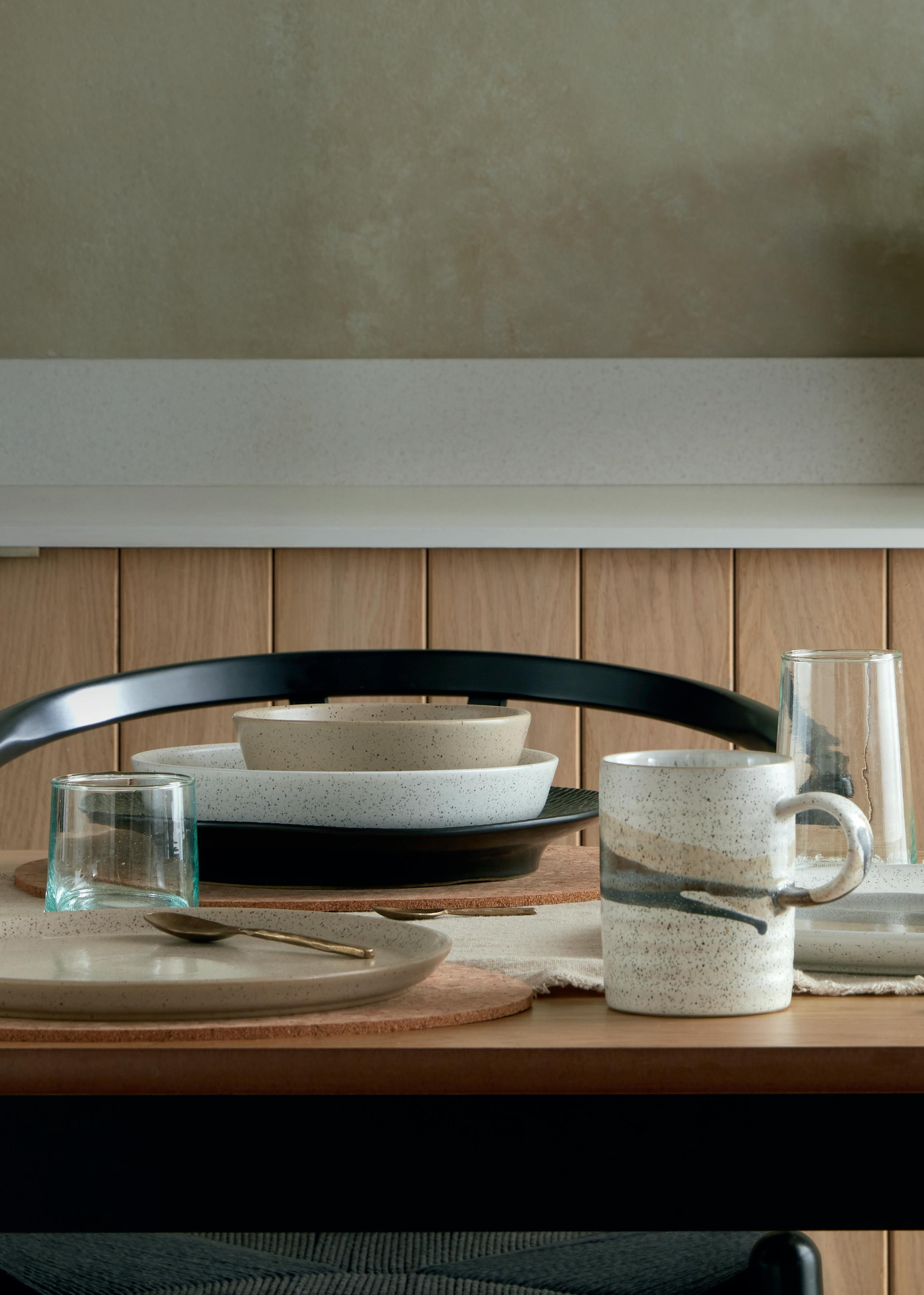 Grain is a modern collection with streamlined shapes in a Scandi palette which is thoughtfully designed and sustainably crafted. Satin-matt glazes form two base neutrals, Wheat and Barley, which can be layered with the contrasting black-brown of Grain Chia, or the moody landscape of the Grain Accent. The new shapes of Grain have a finer, lighter profile and subtle curves which make them beautiful to use and easy to store.