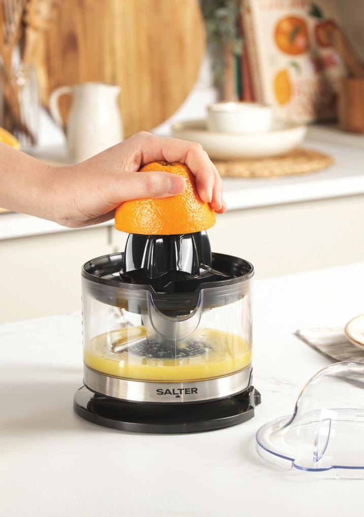 Compact and easy to use, the Salter Electric Citrus Juicer preserves 100% of natural vitamins and minerals with no additives. Two interchangeable reamer cones handle small and large citrus fruits, while two-way rotation maximises juice extraction. Five pulp settings let users customise taste and texture. Juice collects in a 500ml BPA-free jug with measurement markings for easy pouring. With its 40W motor, drip-free spout and simple cleaning, this juicer makes enjoying fresh, healthy juice effortless.
