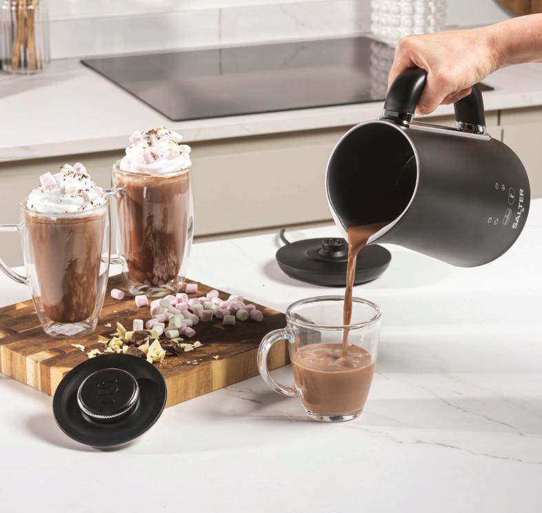 With a generous 500ml capacity, it’s perfect for family, friends, or a treat for the household. Its 4-in-1 functionality lets users create hot chocolate, hot milk, or cold drinks with full or partial froth. The hiddenuntil-lit LED display and temperature icon make selecting and controlling the drink simple, while dedicated frothing capacities ensure velvety, baristastyle results. Designed for convenience, it features a 360° swivel base, detachable whisk and non-stick interior for easy cleaning.