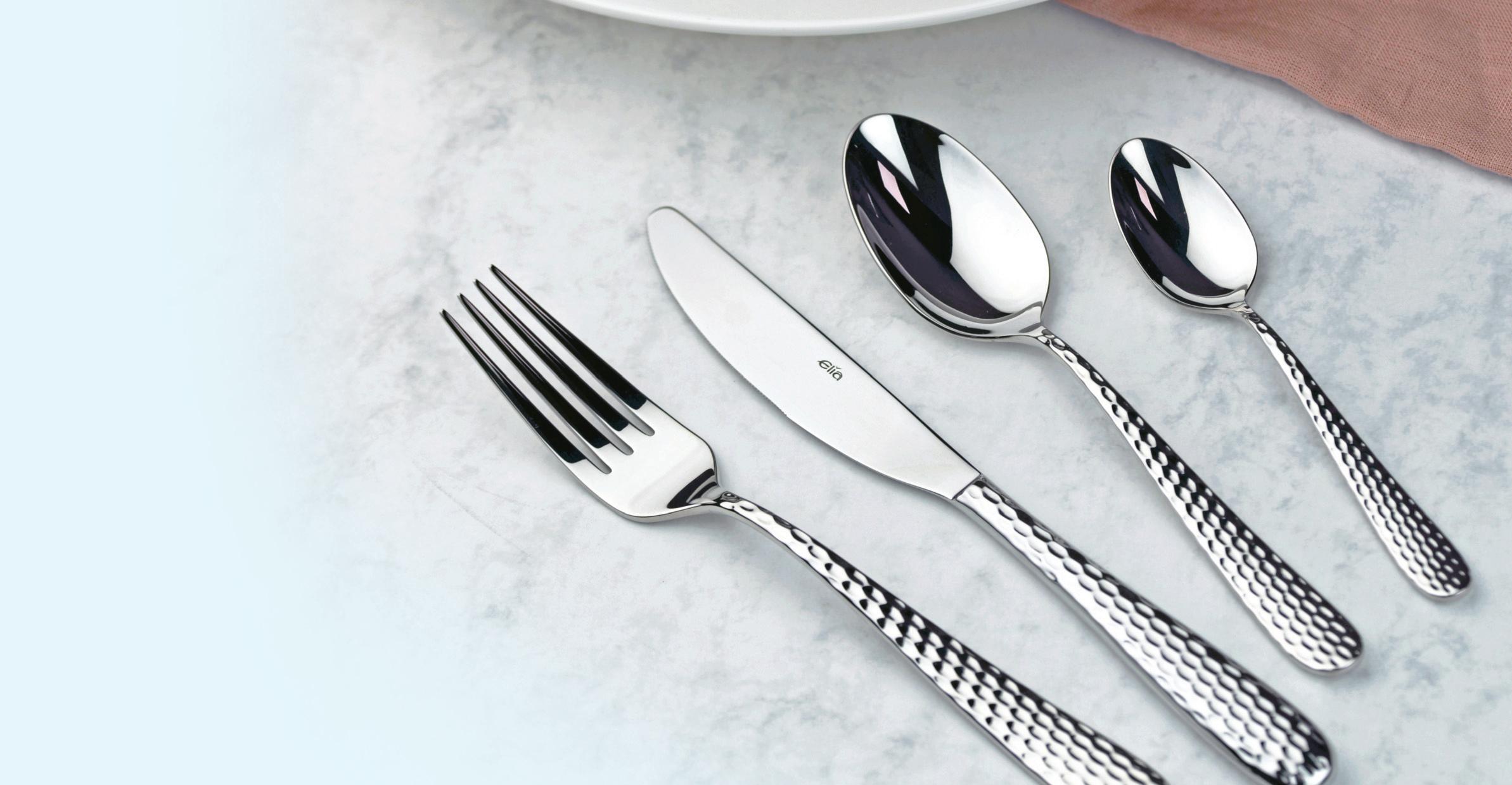 Cellene is a welcome addition to the Elia range, featuring a unique and stylish textured finish. Defined by sleek curves and a distinctive pattern, Cellene is the ideal choice for modern table settings. Crafted from premium 18/10 stainless steel, the collection features a textured, debossed handle design, offering a tactile experience that sits comfortably in the hand. Cellene comprises a full range of eight pieces, with the addition of coffee spoons.