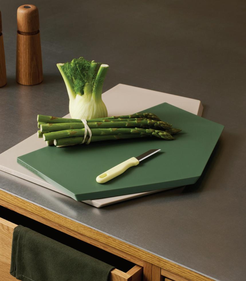 Crushgrind’s Zurich Cutting Boards combine bold Scandinavian design with durable polypropylene construction, ideal for chopping, slicing and serving. Available in three sizes - small (30cm × 18cm), medium (38cm × 26cm) and large (46cm x 34cm). They feature geometric shapes with slightly angled edges for easy lifting, dishwashersafe convenience and a hygienic, BPA-free feel. Offered in six colours that coordinate with Crushgrind’s Billund series, they also double as decorative countertop pieces. Distributed in the UK by Burton McCall.